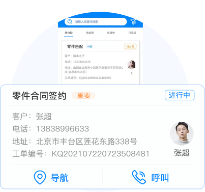 e售后按照人员距离、工作饱和度、工作状态等优 化派单,合理分配服务资源,有效提高服务效率。