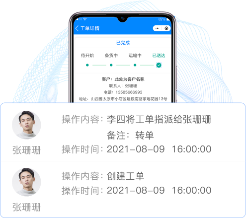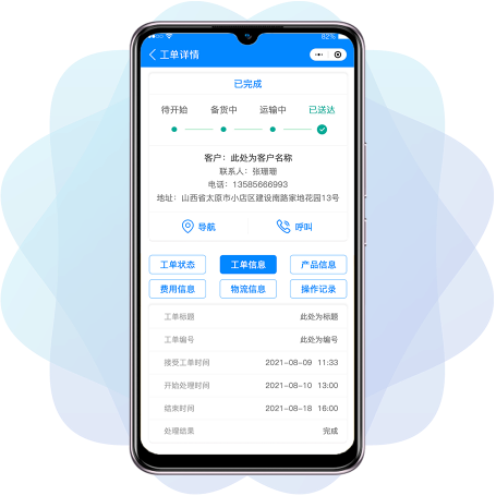 工单进度实时展示,工单信息清晰展示, 任务节点随时更新,超期服务单实时提醒。