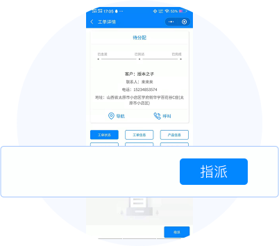 服务台接单后,可在移动端进行派工, 服务人员当前工单量直观显示,可作 为派工参考,方便高效
